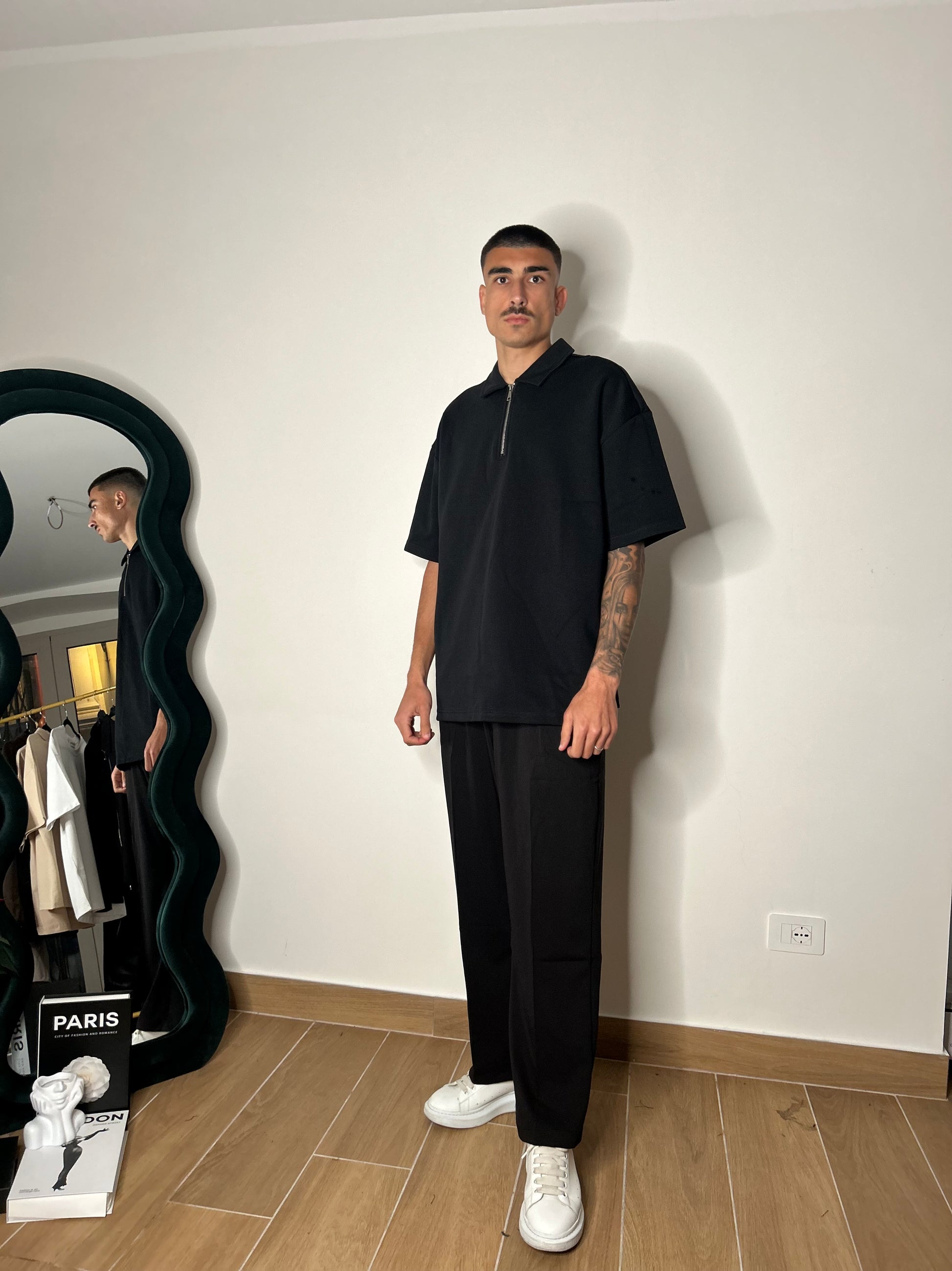 Polo zip over nero